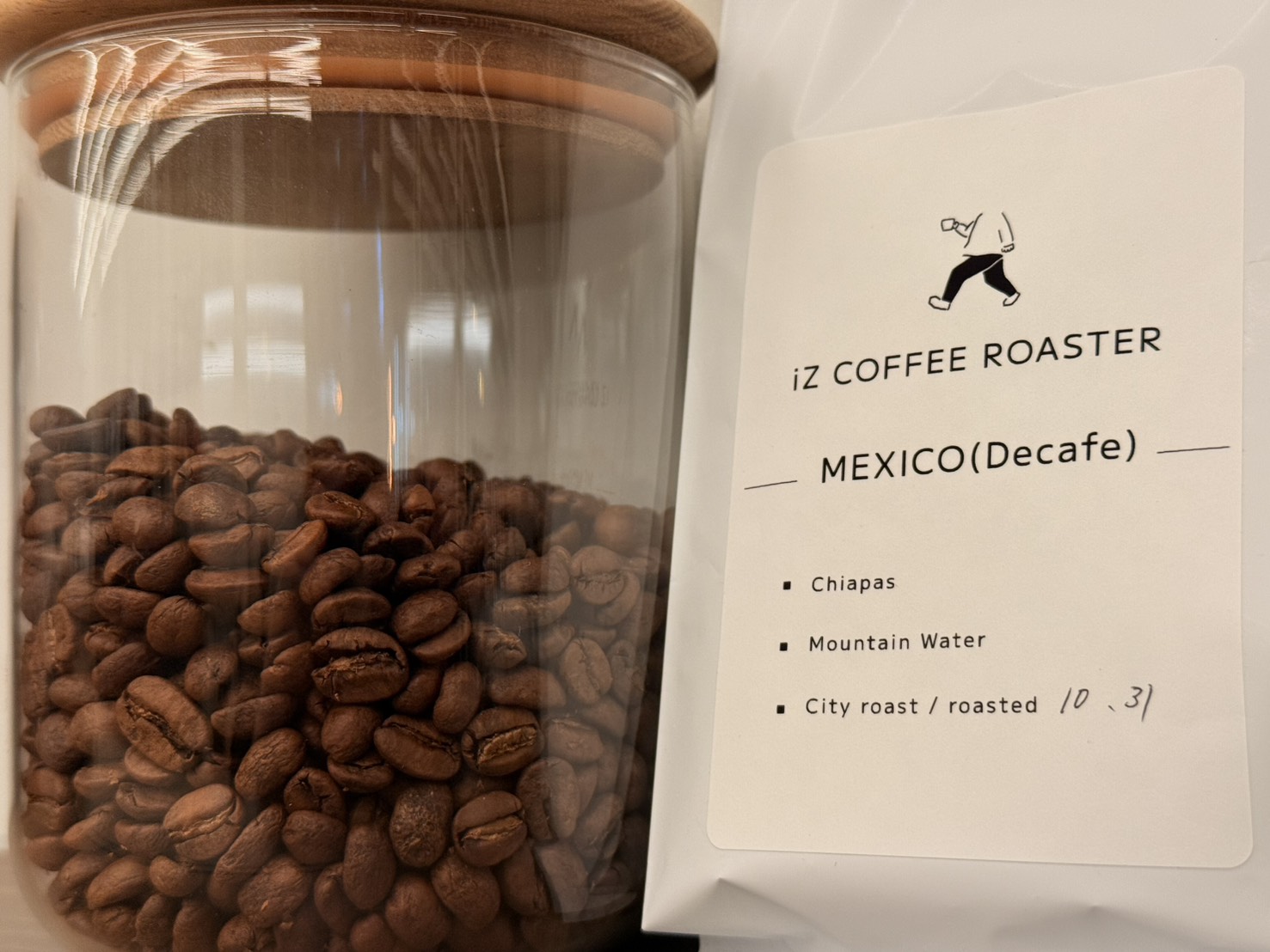 このロットは、化学薬品を使わず、水だけでカフェインを除去するマウンテンウォーター方式でデカフェ処理されています。カフェイン除去後も豆の組織や風味成分が保たれやすく、自然な香りと甘さが残るのが特徴です。